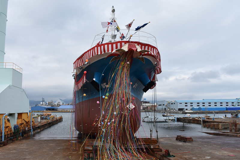 総トン型ケミカルタンカーの進水作業を株式会社カナサシ重工にて行いました。