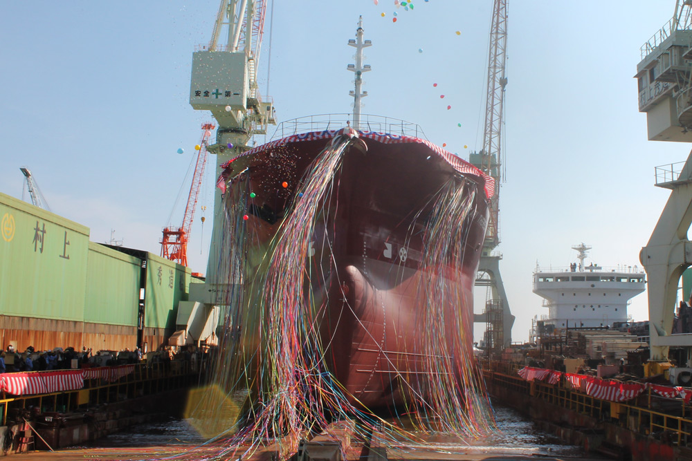 ケミカルタンカーの進水作業を行いました。